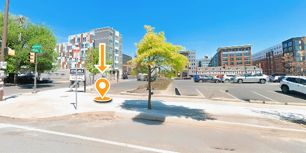 Board in the 81 Spring Garden St parking lot on the Spring Garden St side, at N Front St.