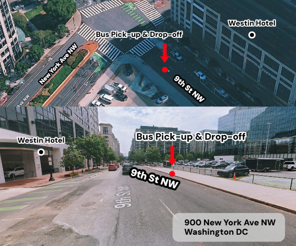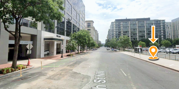 Curbside pickup on 9th St NW, across from the Westin vehicle exit.